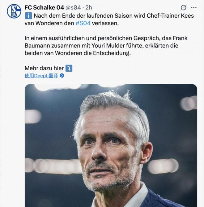 沙爾克04官宣:穆帥接任主教練,任期至2027年。