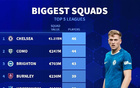 五大聯(lián)賽球員數(shù):切爾西46人領(lǐng)跑,榜首&末尾球隊揭曉
