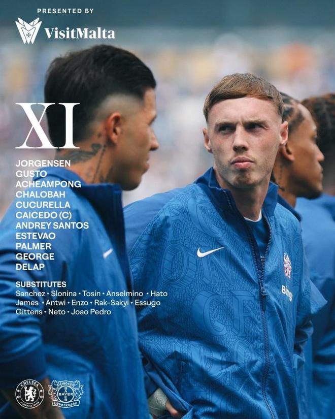 切爾西勒沃庫(kù)森首發(fā):埃帕爾默,杰克遜恩昆庫(kù)缺席