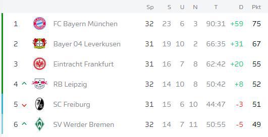 拜仁失冠或因兩連敗、藥廠三連勝及凈負30球