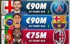 左邊鋒身價榜:維尼修斯居首,萊奧第四,尼科第五。