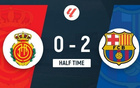 半場巴薩2-0馬洛卡,費蘭破門,拉菲尼亞頭球建功。