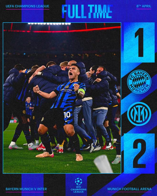 歐冠:國(guó)米絕殺,拜仁失守!客場(chǎng)2比1勝。