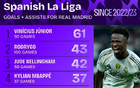 皇馬西甲近3年進(jìn)球榜:維尼修斯領(lǐng)跑,姆巴佩緊隨其后