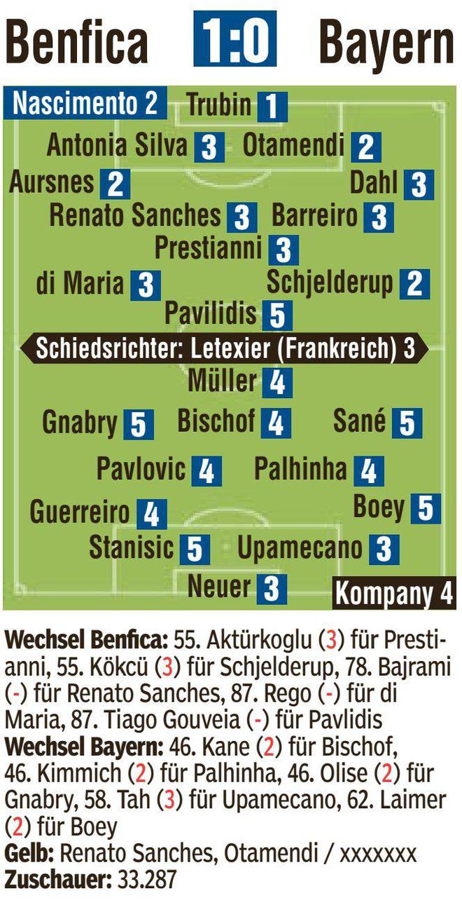 拜仁0-1本菲卡,薩內得分低,本菲卡門將表現佳