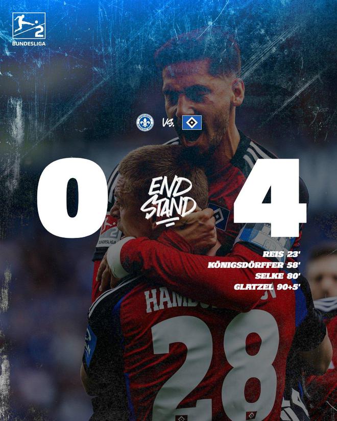 德乙前三全勝,分差縮小至3分,漢堡勝可返德甲。