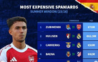 西班牙夏轉(zhuǎn)會費榜:蘇維門迪領(lǐng)跑,A費、巴埃納上榜